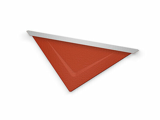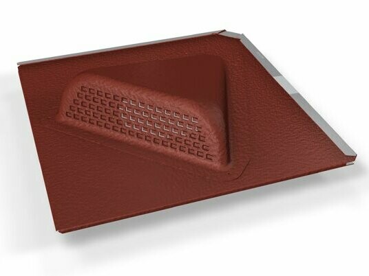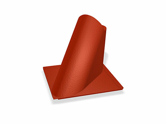 The slightly larger rhomboid roof tile 44 × 44 cm focuses on a more reduced design and completely does without the beading embossing. Furthermore, it can be installed from a roof pitch of 12°, and it can be installed quickly without clips, i.e. directly fastened.